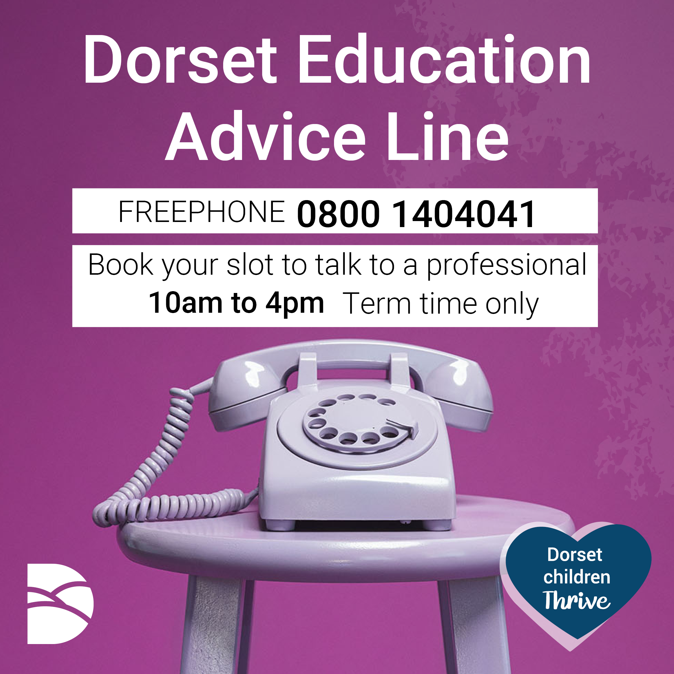 “The Education Advice Line will help to ensure that families and professionals work together at the earliest opportunity to engage in early identification and universal support for families in Dorset.